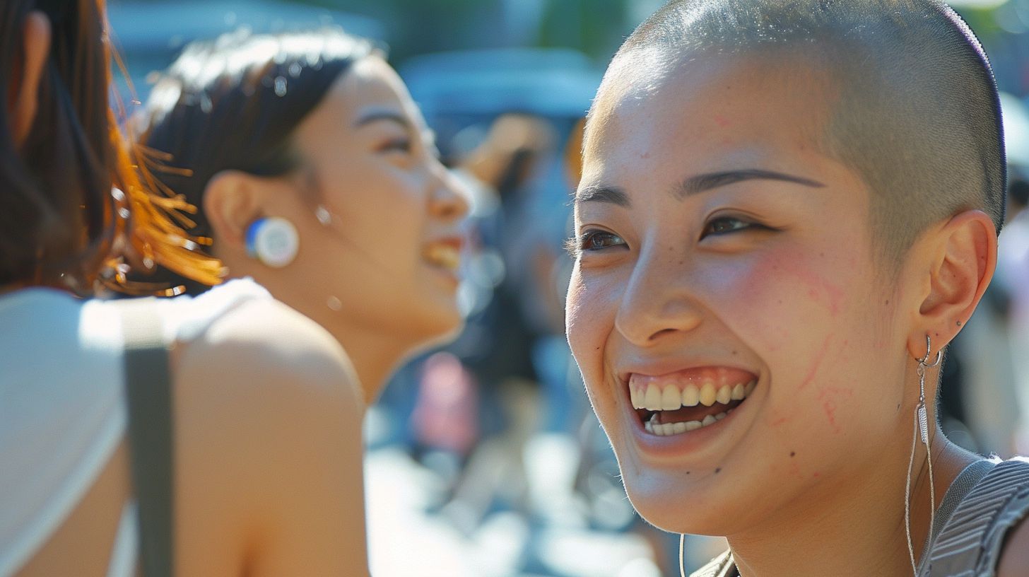 スキンヘッドにする女の子は、さっぱりした性格が多いので、質問に、何でも答えてくれる!?
