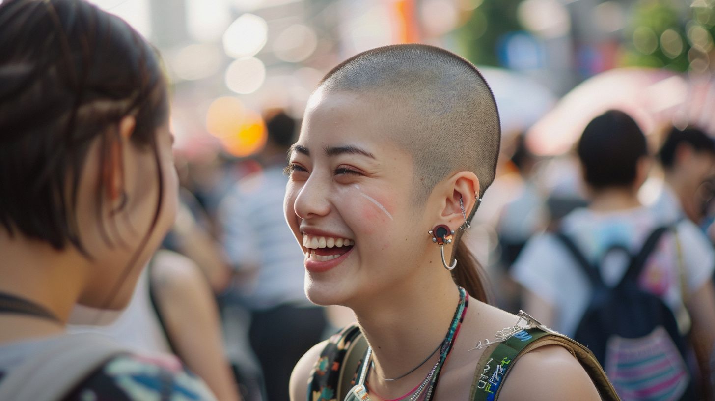 スキンヘッドにする女の子は、さっぱりした性格が多いので、質問に、何でも答えてくれる!?