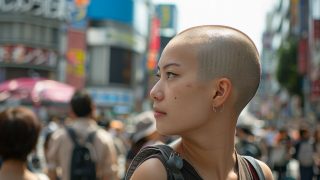ai画像 スキンヘッド画像 滋賀県 湖南市 #スキンヘッド女子 #坊主頭 #坊主女子 #AI美女